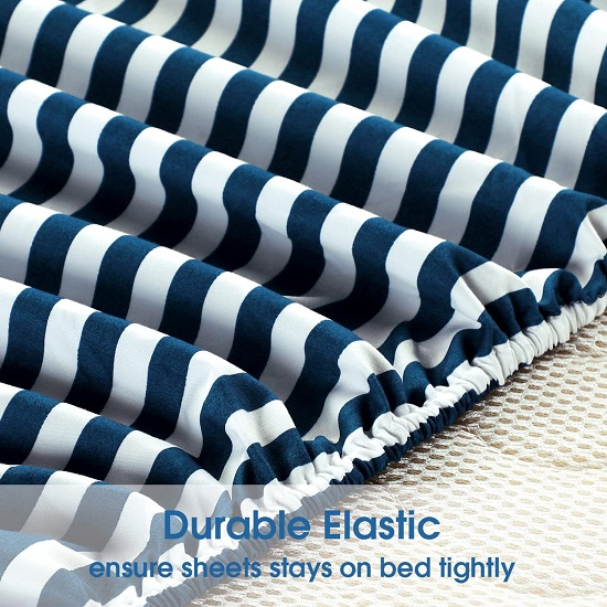 6 Piece Printed King Size Bed Sheets, Extra Soft Brushed Microfiber 1800 Bedding Pattern Sheets, Deep Pocket, Wrinkle & Fade Free, Navy Pinstripe